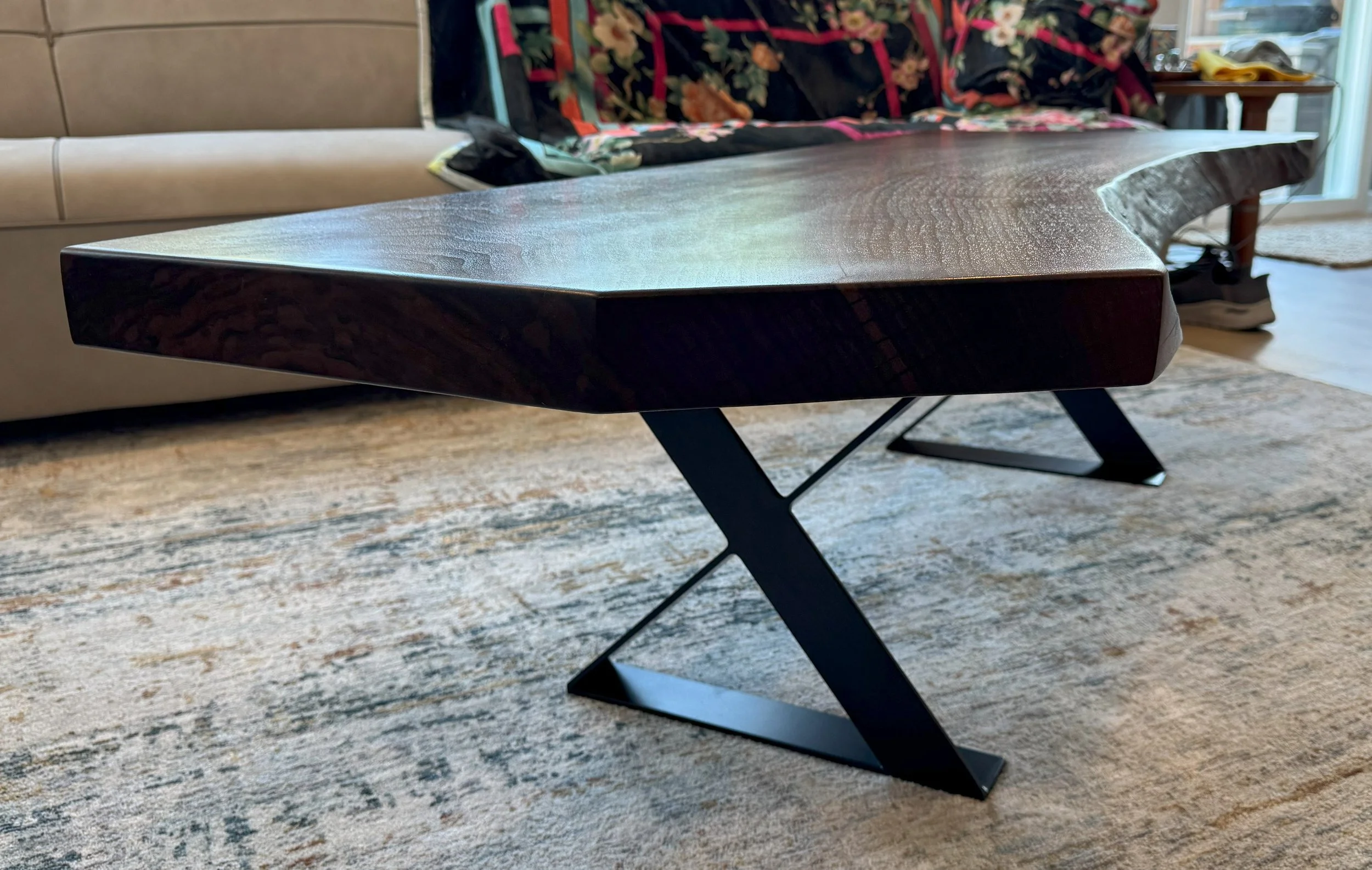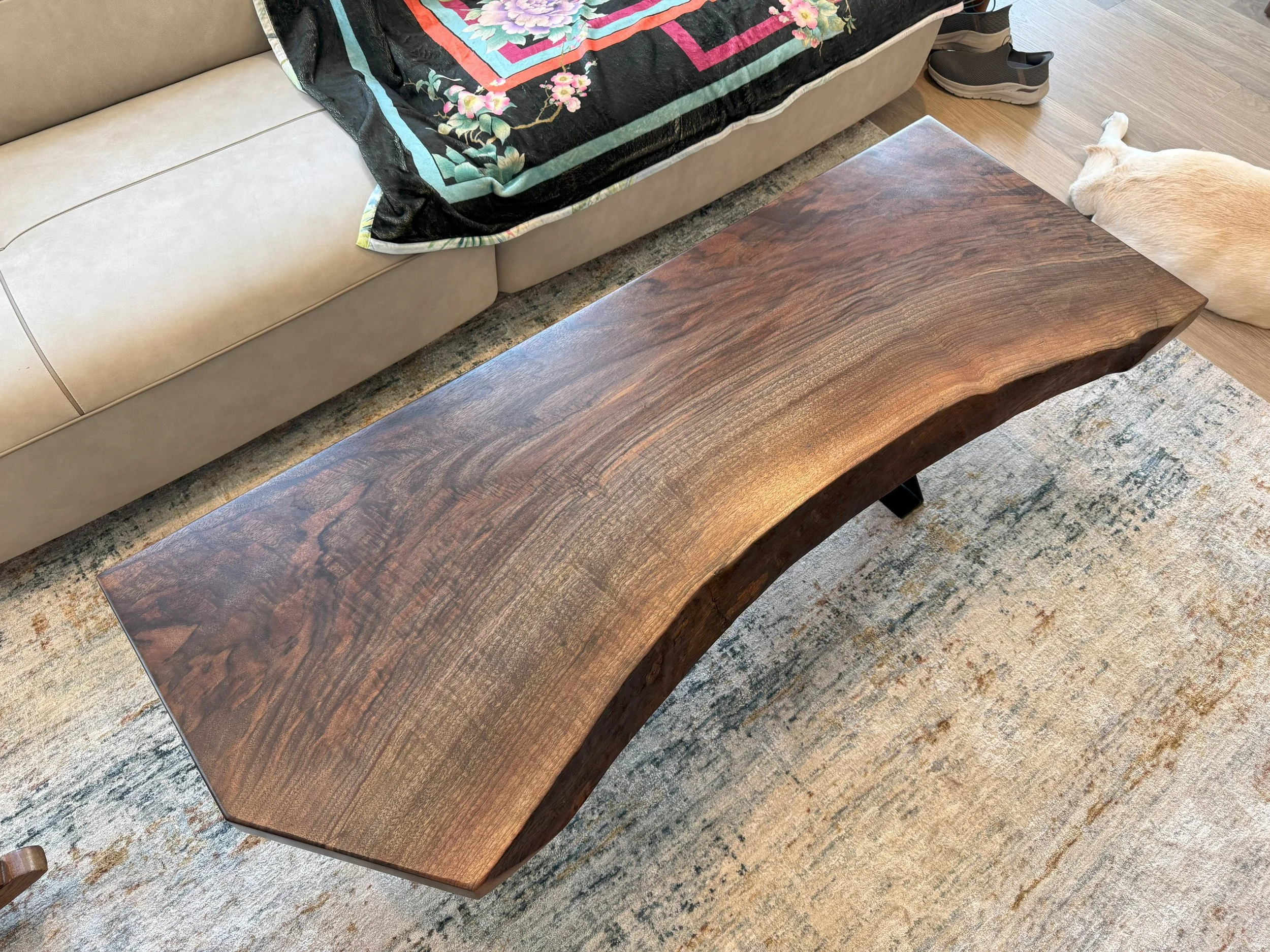 A beautiful slab of Klamath Valley black walnut, the wood speaks for itself. A simple flattening, and exquisite finishing, do this piece of wood justice in turning it into a statement coffee table.